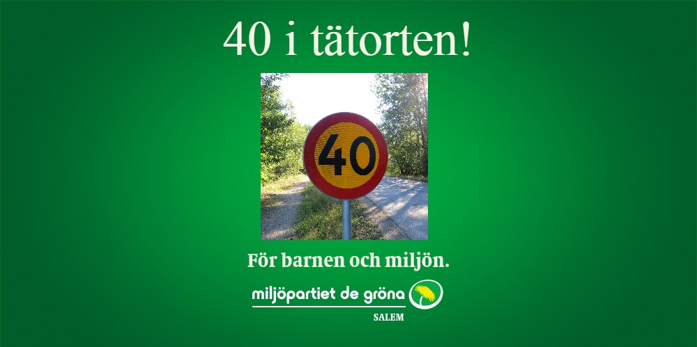 Miljöpartiet föreslår en generell sänkning från 50 till 40 i tätorten. Orsaken är att många klagar på för höga hastigheten på våra gator. Lugnare trafik och mindre utsläpp är det förväntade resultatet.