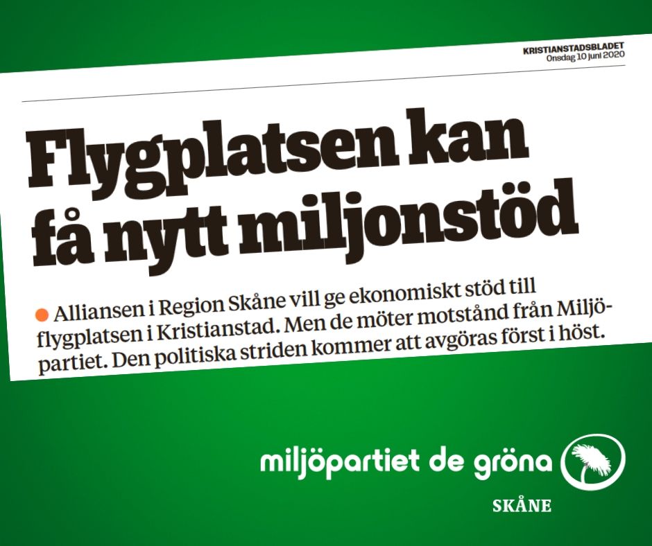 – Det är med bestörtning jag läser om det här. Det visar ännu en gång att den styrande Alliansen inte tar klimatfrågan på allvar. Vi är mitt i en brinnande klimatkris samtidigt som covid 19 gjort att sjukvården går på knäna. Då är helt vansinnigt att ta pengar som behövs i sjukvården och ge till förlusttyngda flygplatser. Det är svårt att förstå hur Alliansen tänker, säger Mätta Ivarsson, gruppledare för Miljöpartiet i Region Skåne.