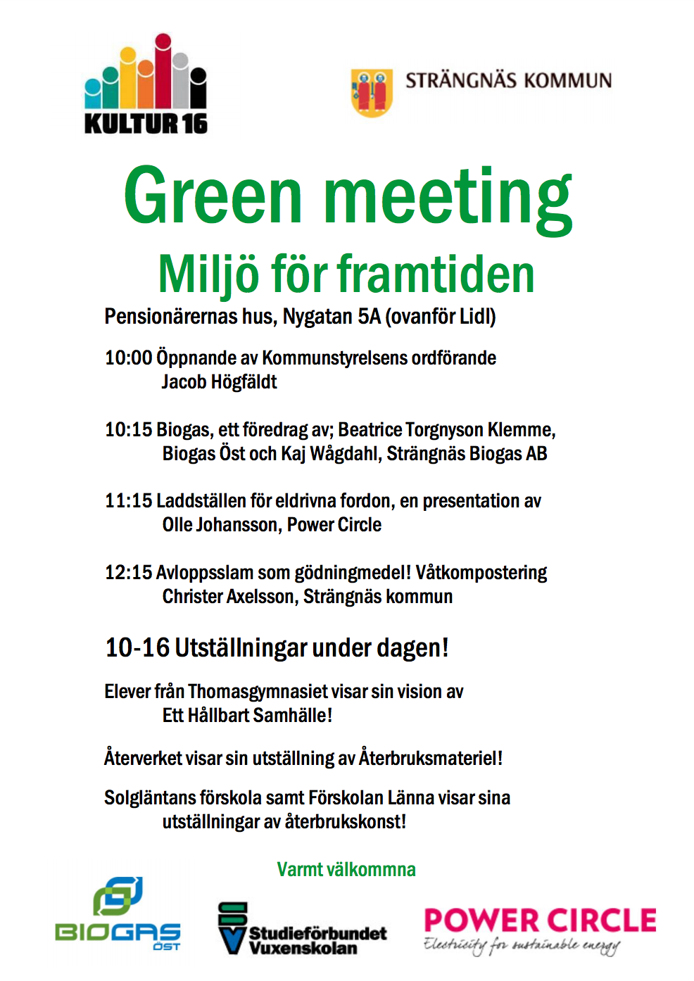 Du kommer väl förbi på lördag? Program med föreläsare och utställningar kring olika aktuella gröna frågor.