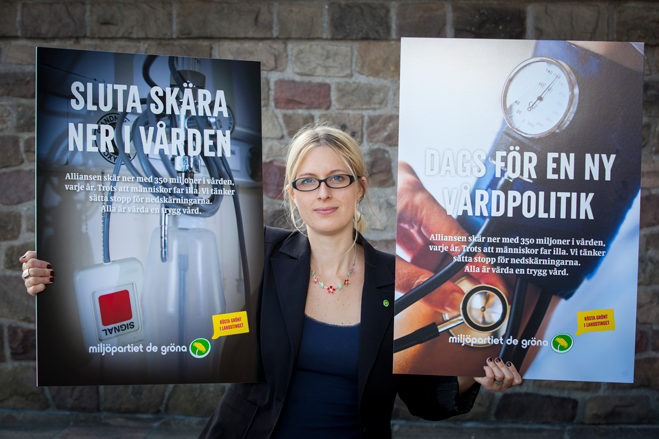 – Vi har lyssnat på patienter och medarbetare. Alla berättar de om samma sak: en vård i kris, säger Helene Öberg (MP), oppositionslandstingsråd i Stockholms läns landsting. Alliansen har tvingat fram så många nedskärningar att personalen inte kan ge patienterna den tid de behöver. Vi vill istället anställa mer personal och att alla resurser ska stanna i vården. Vi vill åstadkomma en trygg vård och göra landstinget till en attraktiv arbetsplats.