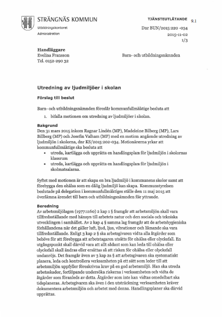 I går, 24/11 beslutade en enig barn- och utbildningsnämnd att bifalla Miljöpartiets motion om att utreda och förbättra ljudmiljön i våra skolor.