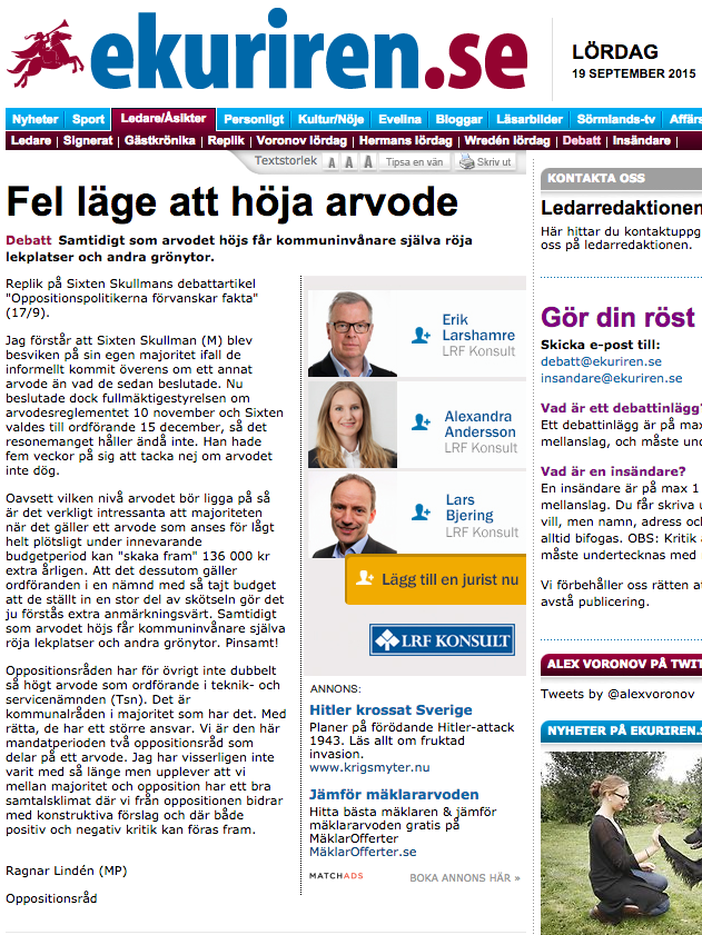 Ekuriren Debatt: Fel läge att höja arvode