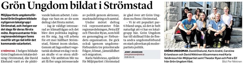 I helgen bildades en lokalavdelning inom Grön Ungdom i Strömstad