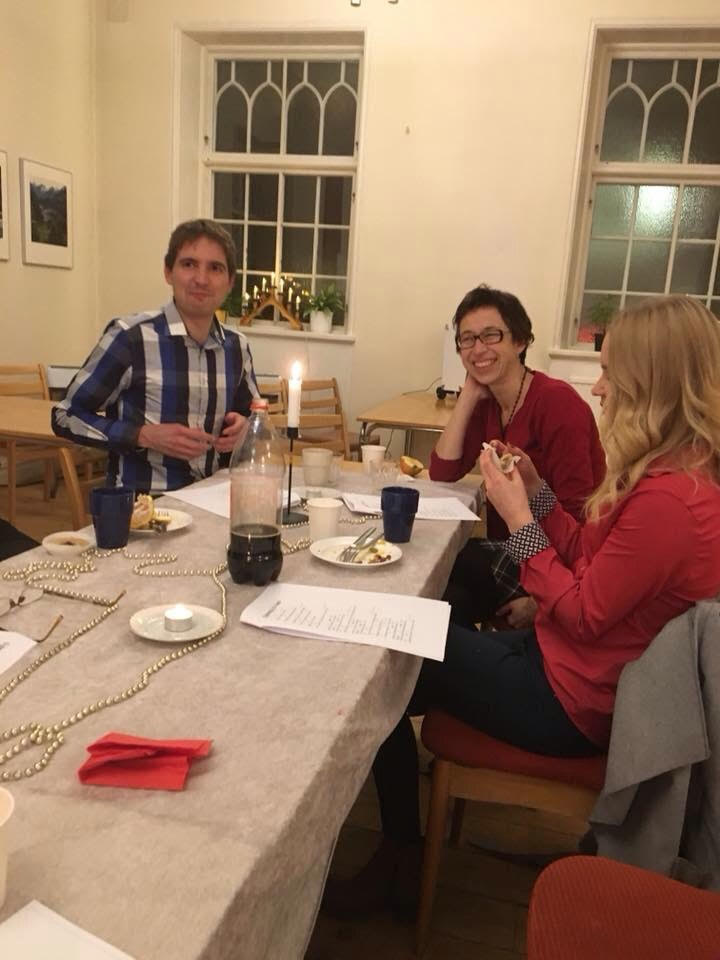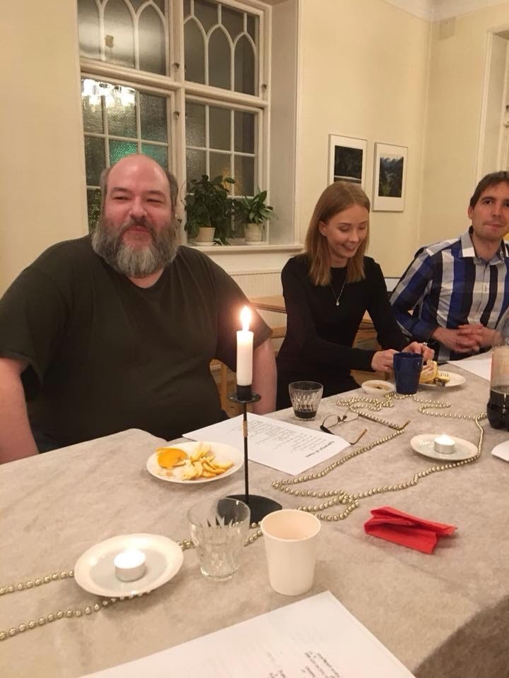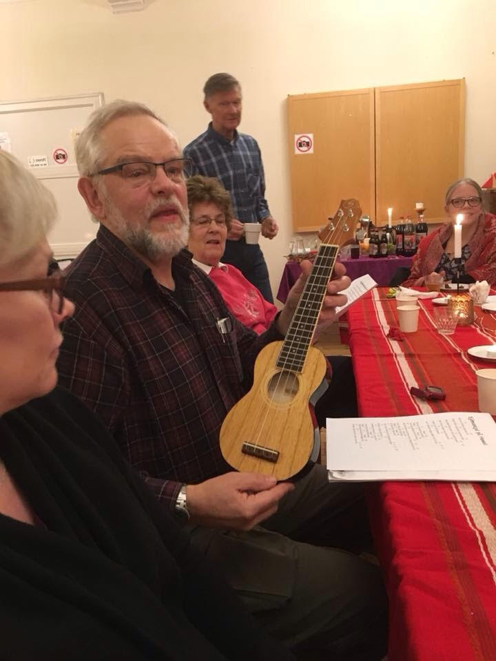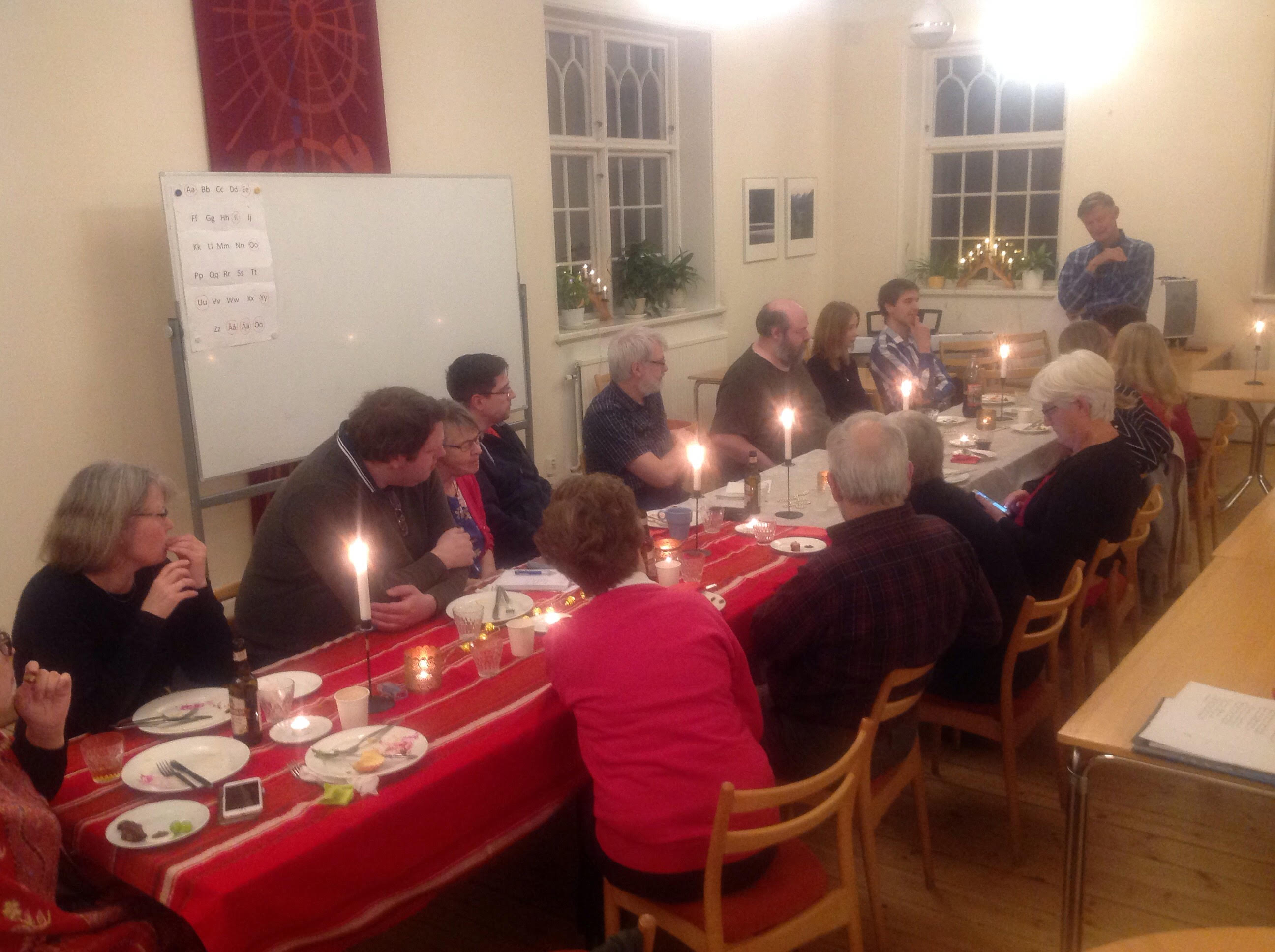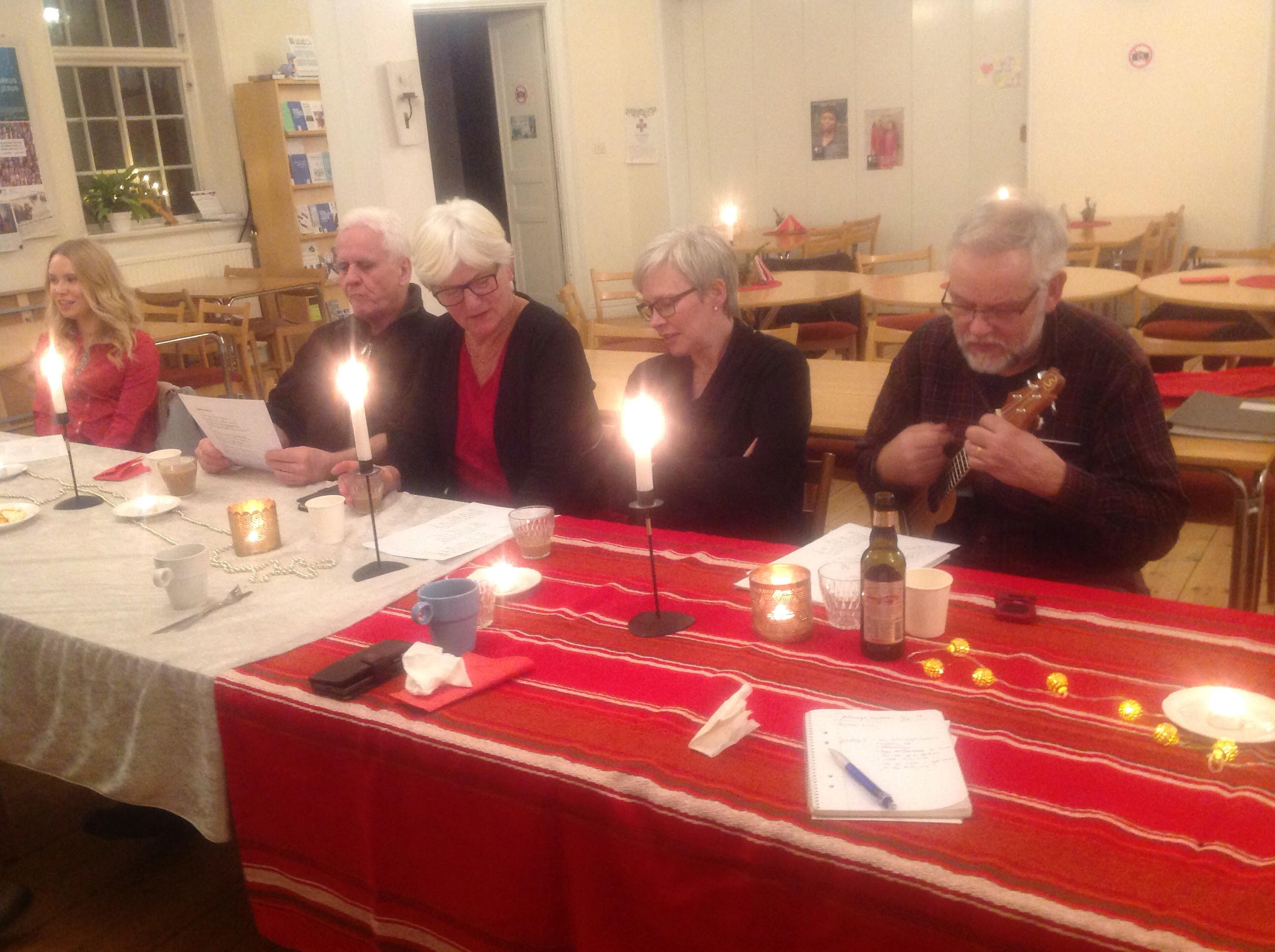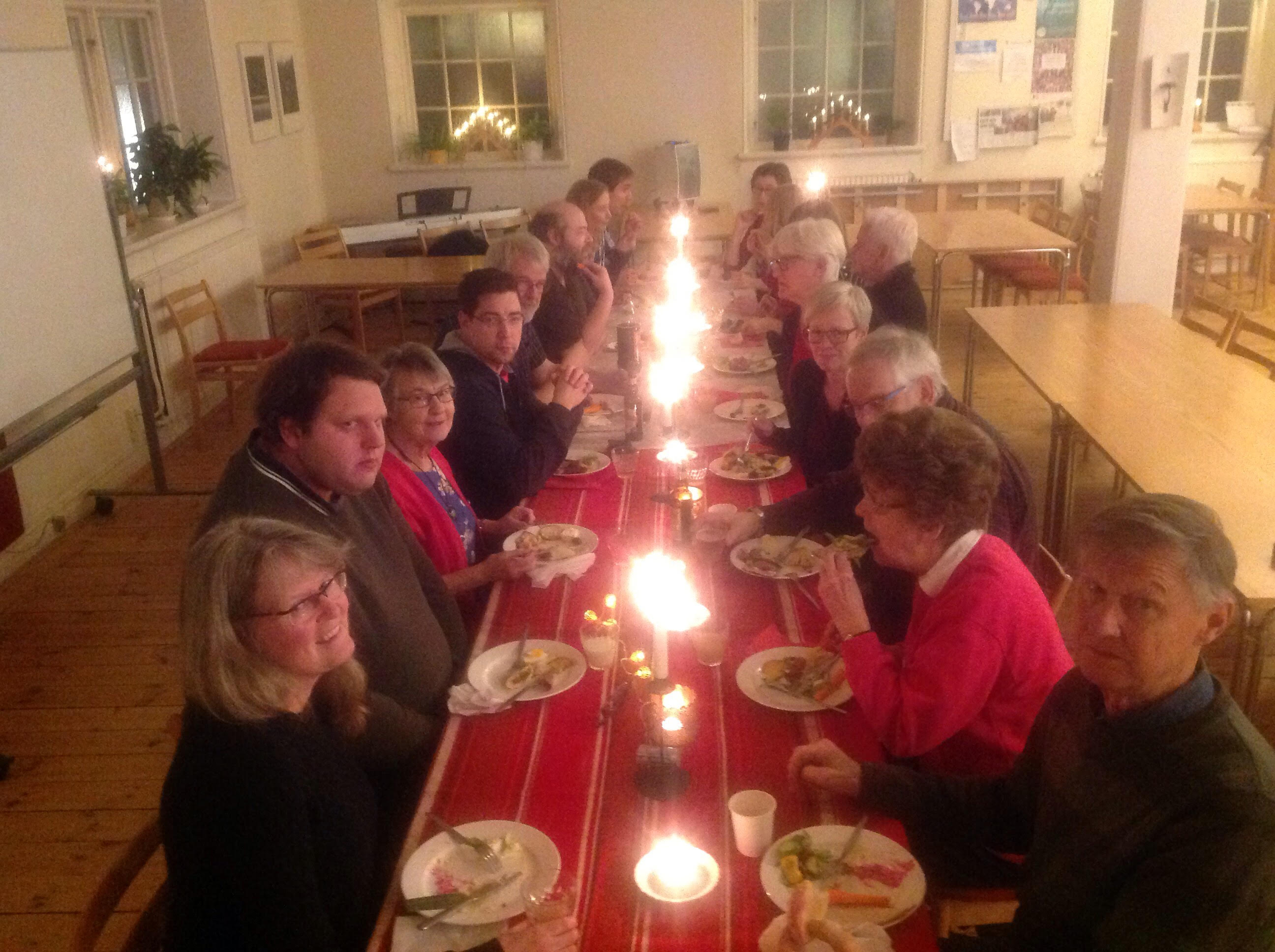 Den 11 december hade Miljöpartiet en välbesökt träff för såväl miljöpartister som vänner och släktingar då vi både åt gott, sjöng tillsammans och fick en information av vår klimatambassadör Jan-Olov Strindlund om Miljöpartiets Klimatfärdplan.