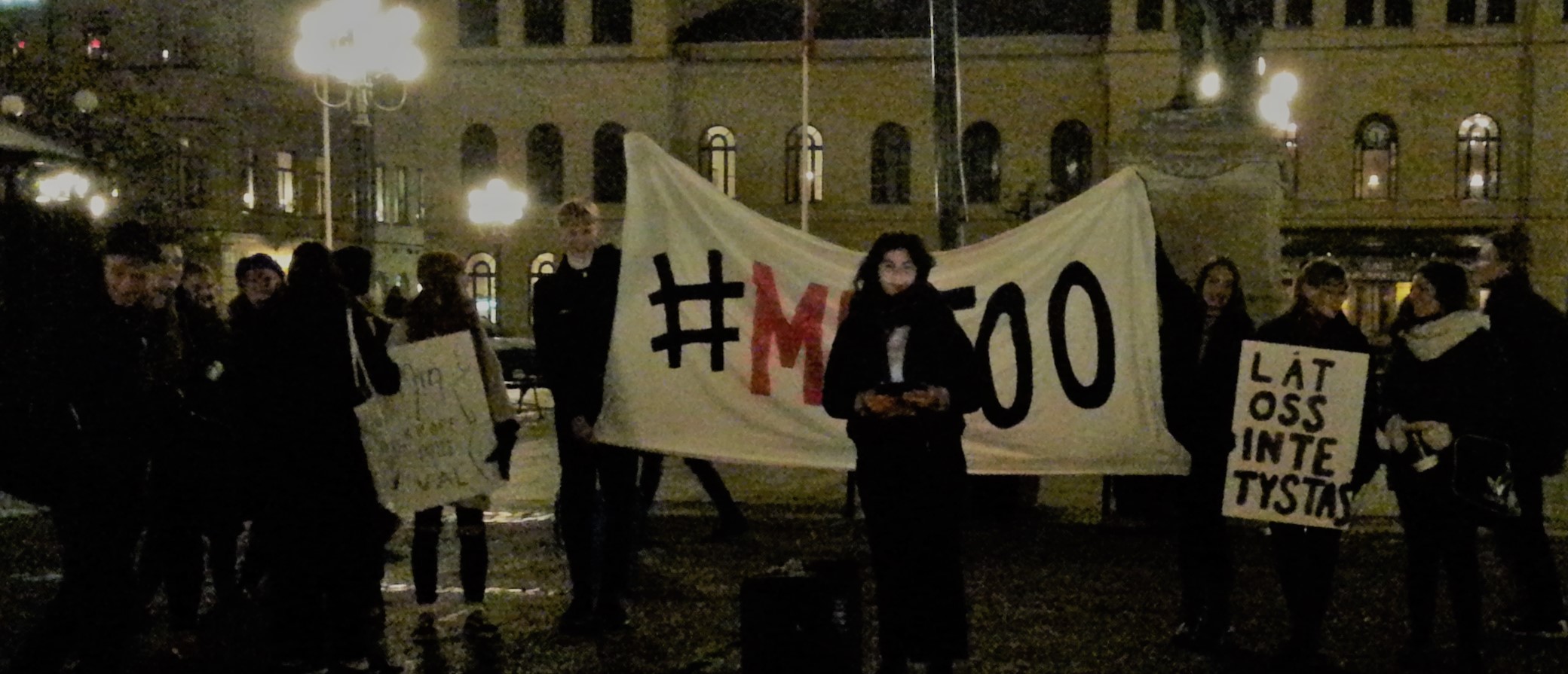 Jasmin Khwaiter, Grön Ungdom, inledde manifestationen och presenterade de tiotalet medverkande. Det var en känslosam och gripande stund med ett kraftfullt budskap. Övergrepp och kränkninger måste upphöra!