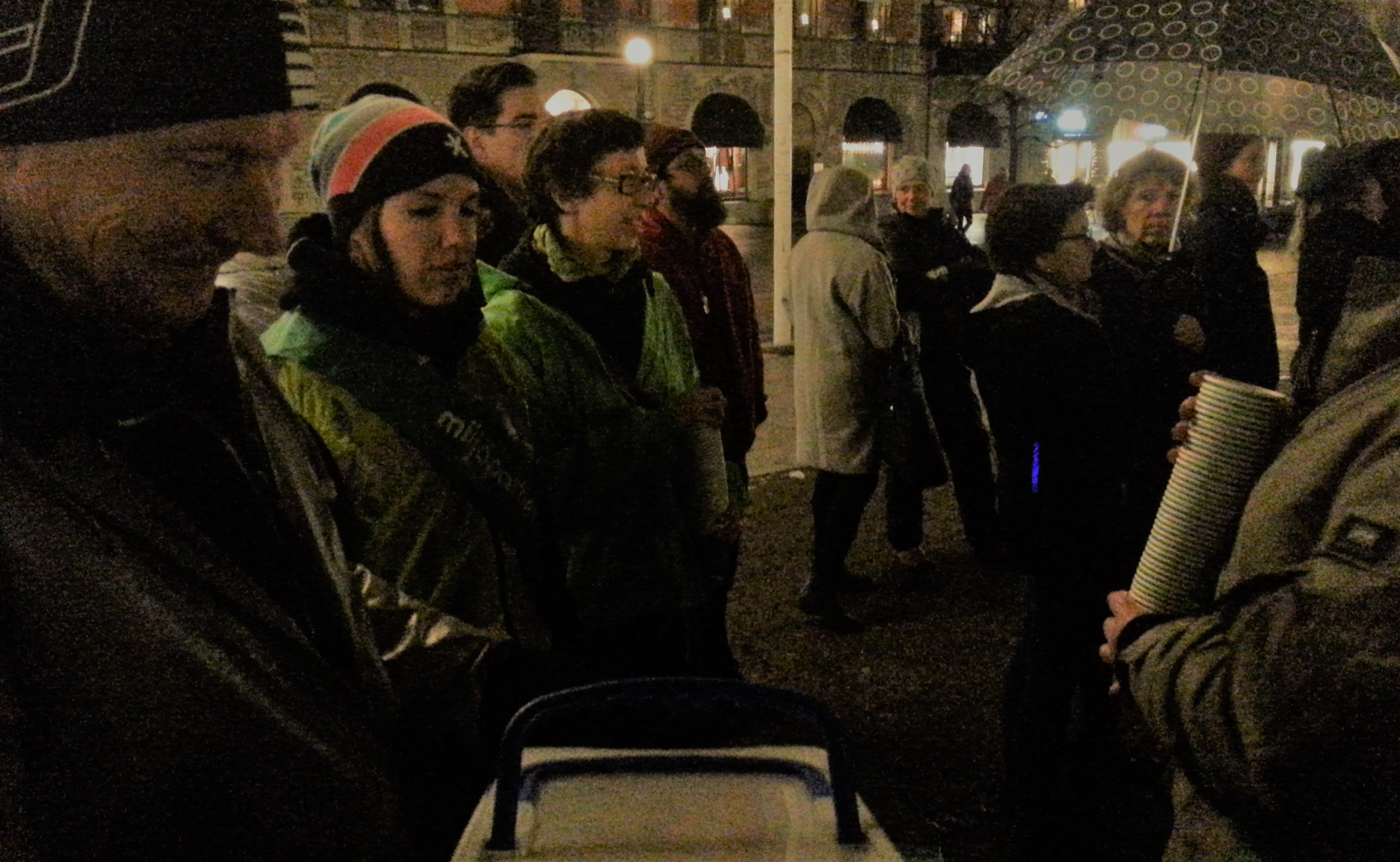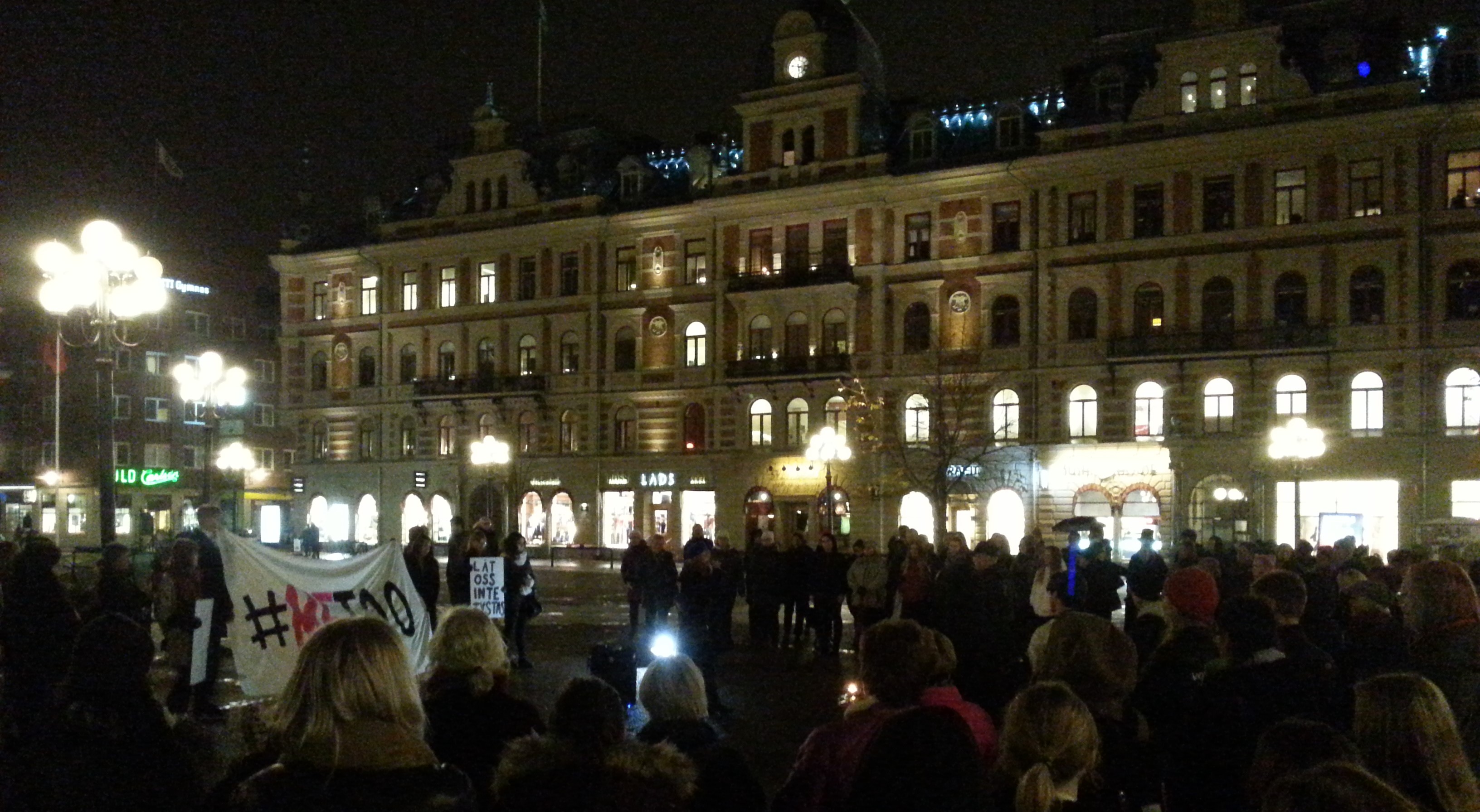 Vid onsdagskvällens #MeToo-manifestation fanns MP på plats för att bjuda på en kopp varmt kravmärkt kaffe och hembakta vegan-bullar.