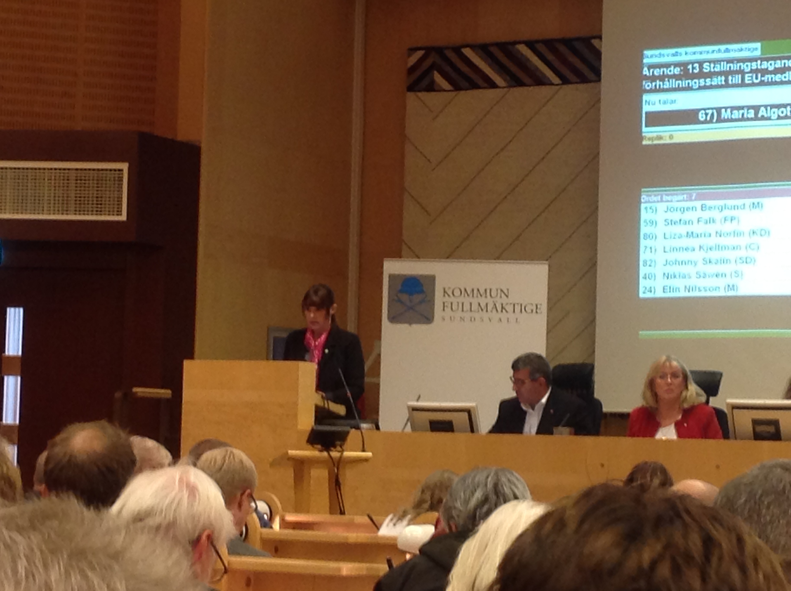 Marias anförande vid septembers kommunfullmäktige då diskuterades kommunens ställningstagande till EU- medborgare.
