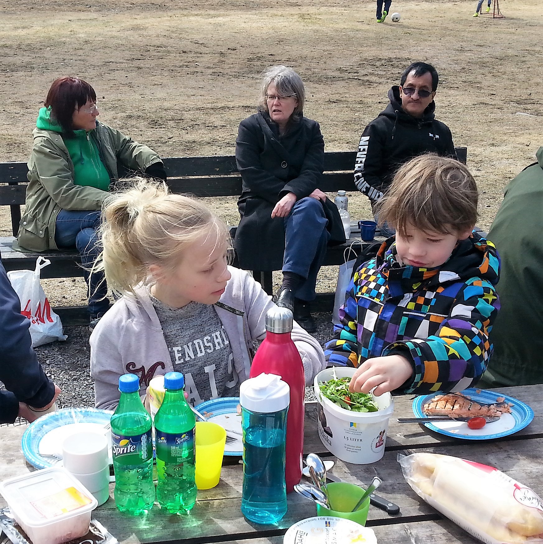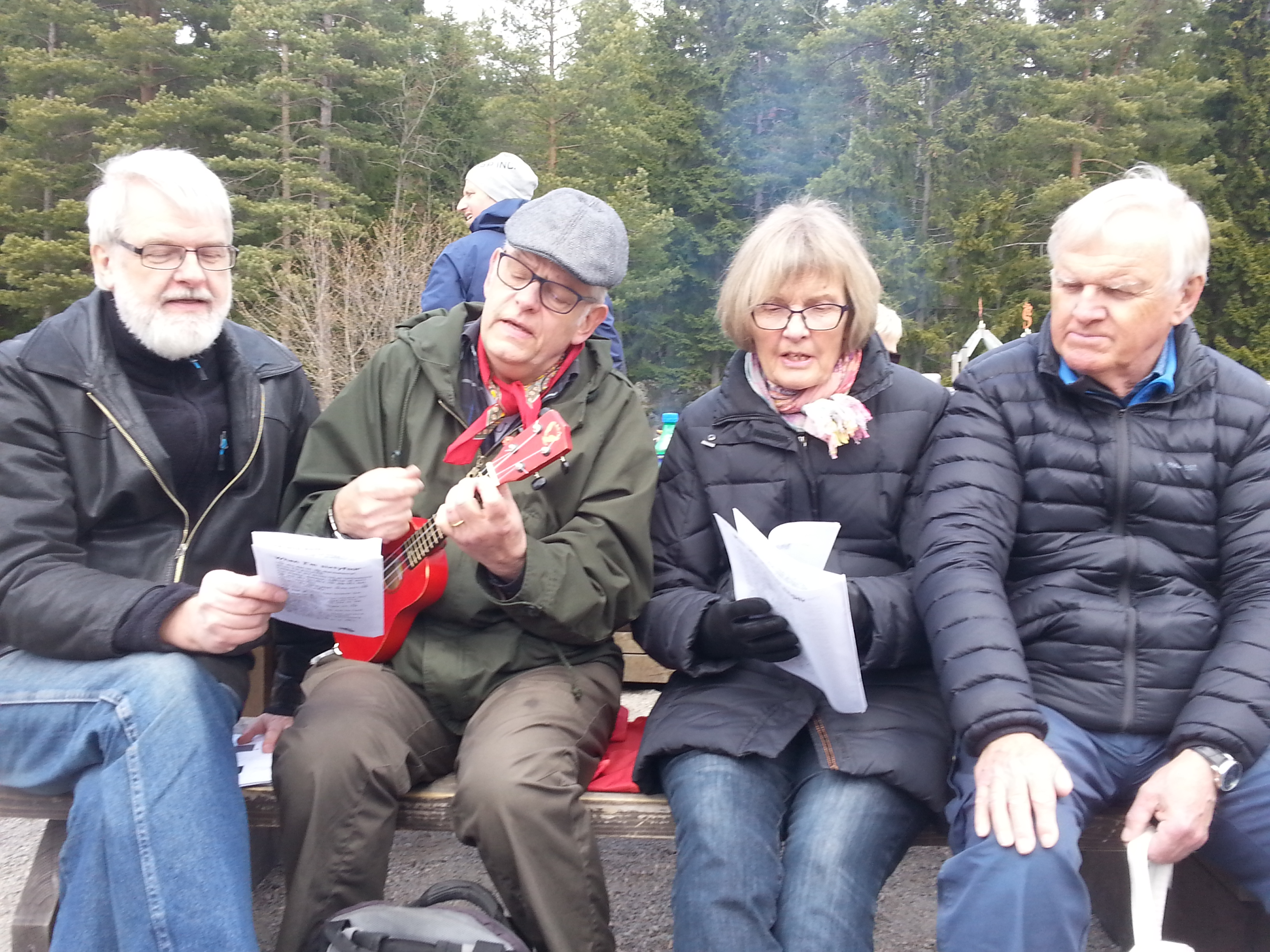 Det blev allsång som ackompanjerades av Gunnar på ukulele, en klurig poängpromenad med sagotema som Maria gjort, fotbollsmatch, grillning och allt annat som hör en ”traditionsenlig” vårutflykt för MP Sundsvall.