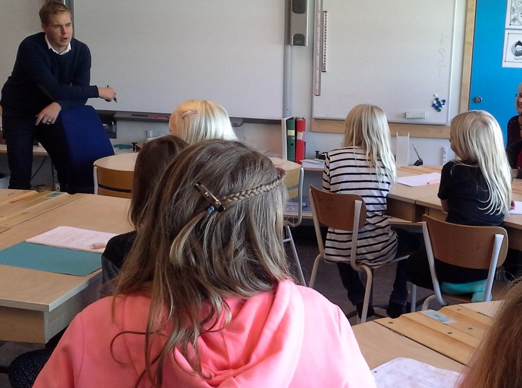 Bilden togs när Miljöpartiets språkrör Gustav Fridolin besökte Bollstanäs skola i oktober 2o13
