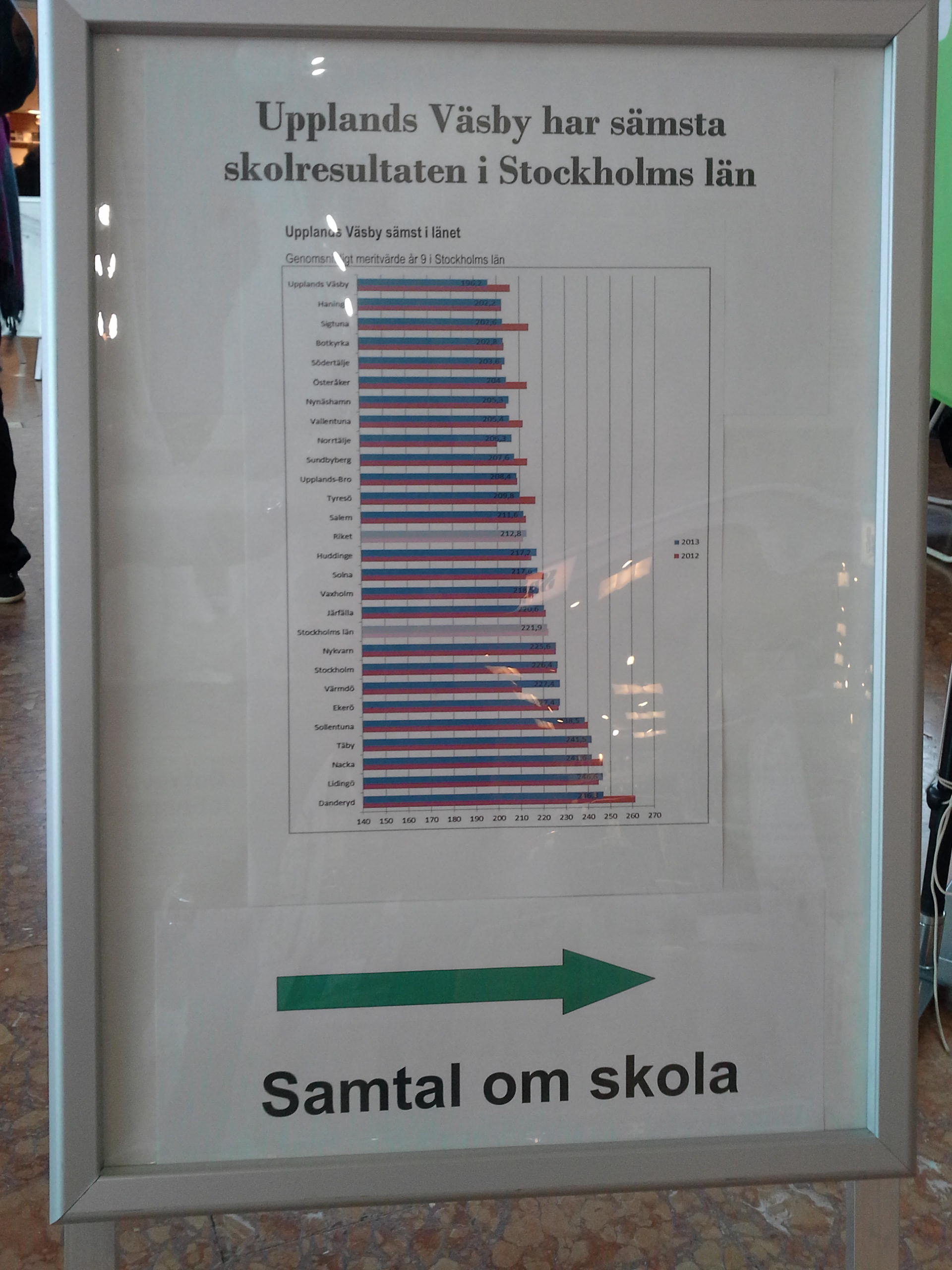 Skolresultaten i årskurs nio 2013. Upplands Väsby översta stapeln, tyvärr sämst i Stockholms län
