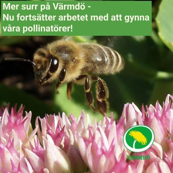 Värmdö kommun har ett pågående arbete för att gynna bin, humlor och andra pollinatörer bla genom att ge plats för ängsblommor på parkmark.